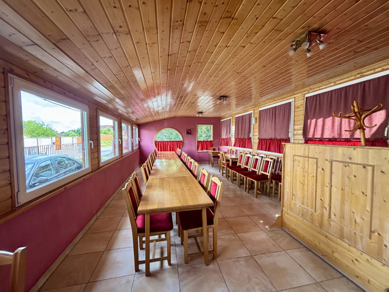 - Vendégtér: 125–135 m², bárpulttal, különteremmel