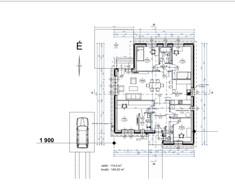 - nappali+3 szobás családi ház teljes tervdokumentációjával