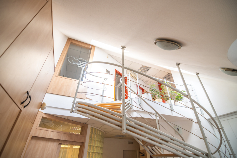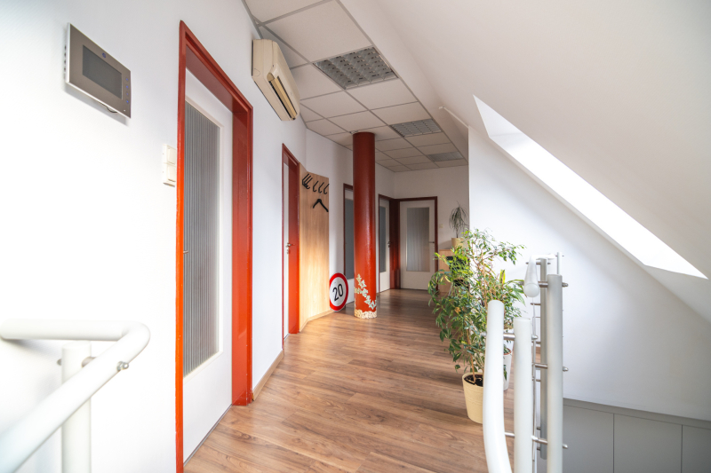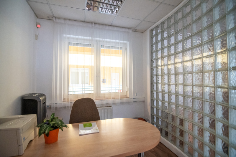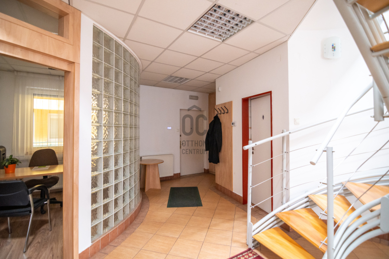 - Egy emeletes irodaépület első emeletén;