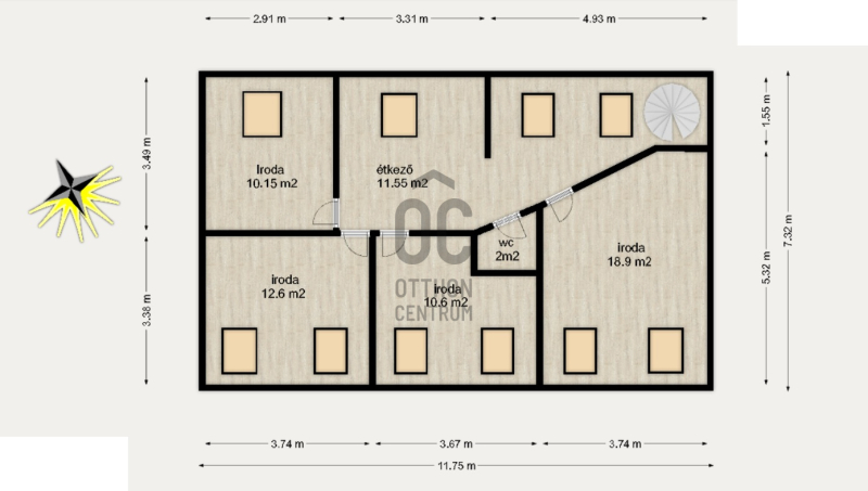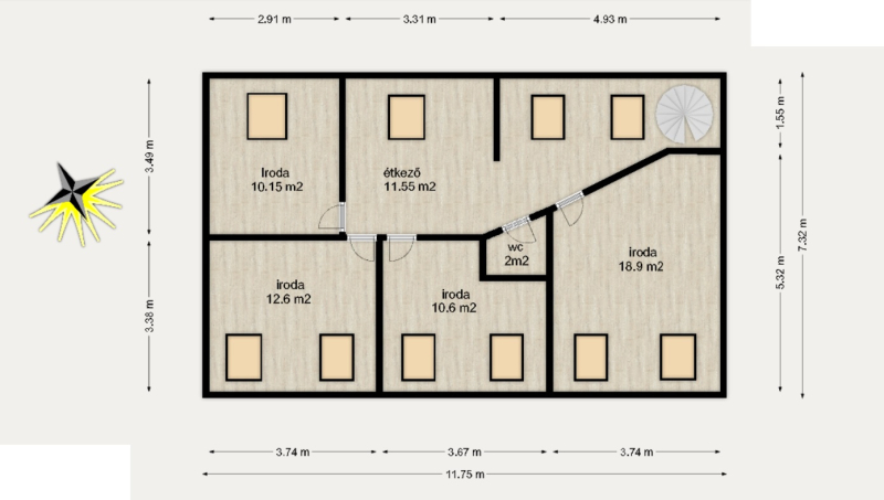 - Tájolás: Kelet, ezáltal reggeltől késő délutánig világos, napfényes;