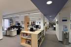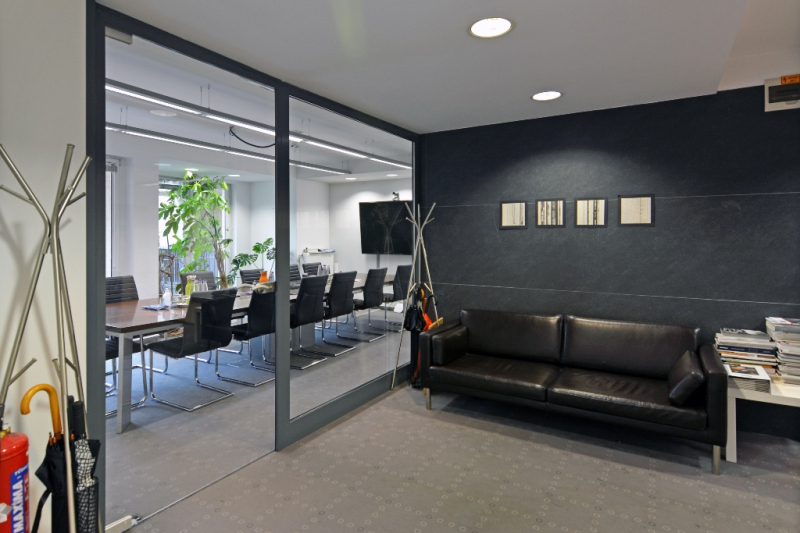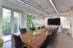 Tárgyalóban a nagyméretű asztal a berendezés része--a mágneses fal letörölhető, írható felület.
