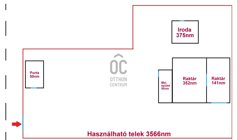 + Saját főútról nyíló bejárattal és portával ellátott összesen 4118nm terület, melyből aszfaltozott üres terület 3566nm.