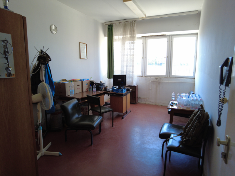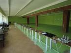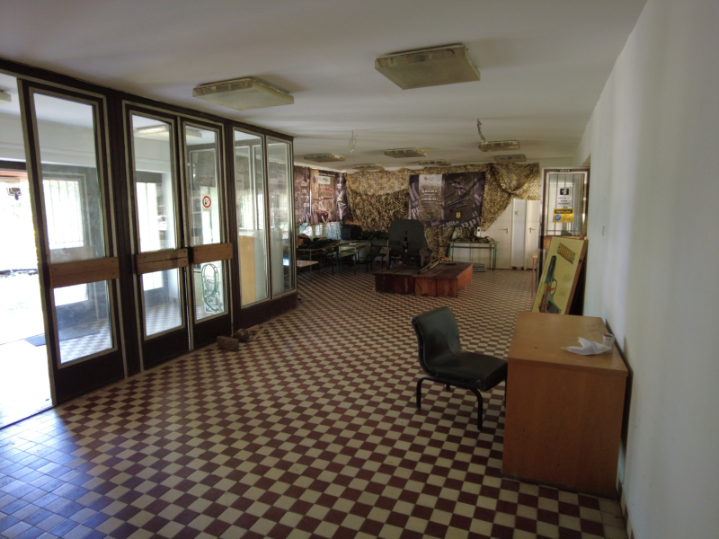 Az egy emeletes, lapos tetős főépület földszintjén találhatók az energetikailag leválasztott, gondnoki lakás, raktár, mesteri szoba, férfi, női mellékhelységek, takarítószer raktár, férfi- női öltözők zuhanyzókkal. A földszinti aulából lehet megközelíteni a félig nyitott, 25 db fedett lőállással rendelkező 50 m-es puska-pisztoly lőteret.