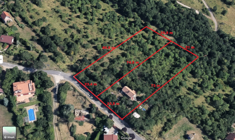 A telek két helyrajzi számon szerepel, azonban kizárólag egyben eladó. Az egyik telken egy kisebb épület található. A közművek – víz, villany, gáz – az utcában elérhetők. Övezeti besorolása: Üh., tulajdoni lap szerint az egyik belterület, kivett beépítetlen terület, másik belterület, kivett lakóház udvar.