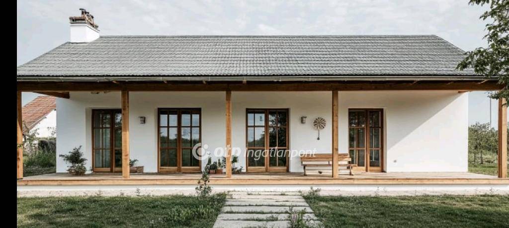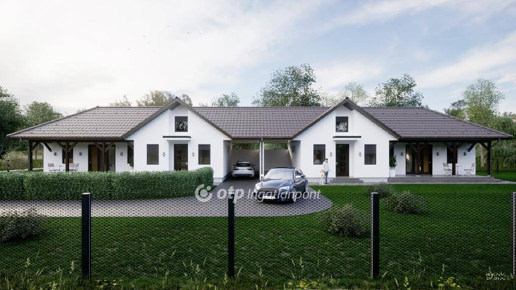 Bács-Kiskun vármegye, Kecskemét, Borbás városrészen 120 m2 hasznos nettó alapterületű új építésű, könnyűszerkezetes családi ház 720 m2 nagyságú kertkapcsolattal, osztatlan közös tulajdonú telken, kétlakásos lakóépület egyik lakásaként eladó. Igény esetén a kivitelező vállalja az ettől eltérő típusú és méretű (80, 100 vagy afeletti nagyságú) családi ház megépítését. A legkorszerűbb rendszerű és energiatakarékos családi házat korábbi referencia-munkákkal és erdélyi háttérrel rendelkező minőségi kivitelező cég építi meg, garanciákkal. A családi ház építésének bizonyos szakaszáig a kivitelező, az új tulajdonos számára, igény szerint biztosítja a belső elrendezés megváltoztatását, saját igényre szabását. A kivitelező a felmerülő változtatásokat lehetőség szerint figyelembe veszi. A ház egy közművesített telken, 80-100 cm mély és 25 cm magas zsalukő sávalapra épül. Falazata szendvics-szerkezettel, benne tűz- és gombaölővel kezelt fa szerkezeten, két réteg gipszkarton- és OSB lap borítással, 20 cm kőzetgyapot, valamint 10 cm homlokzati szigeteléssel és színezéssel készül. A beépítésre kerülő nyílászárók háromrétegű hőszigetelt üvegezéssel ellátottak. A födém fa szerkezeten 30 cm kőzetgyapot szigetelést, 5 cm szerelő légrést és gipszkarton mennyezetet kap. A szintén fából készült tetőszerkezet Mediterran Rundo cserép héjazattal kerül kivitelezésre. A belső aljzat a megfelelő erősségű szerelőbetonra 10 cm vastag lépésálló hő- és víz elleni szigeteléssel ellátva valósul meg, igény szerint padlófűtéssel. Az otthon melegét hőszivattyú biztosítja padlófűtéses hőleadással. Alternatív megoldásként egy hűtő-fűtő klíma is beépítésre kerül. A 2,7 méter belmagasságú belső tér személyre szabott minőségi hideg- és melegburkolatokat kap a kivitelező által garantált keretösszeg nagyságáig. A kulcsrakész állapot ezenkívül tartalmazza a szanitereket, két különálló WC-helyiség lehetőségét, egy épített zuhanyzót és egy 15 m2-es burkolt teraszt.