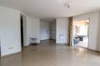 A 47 négyzetméter alapterületű nappali-konyha-étkező közvetlen terasz és kertkapcsolattal rendelkezik.