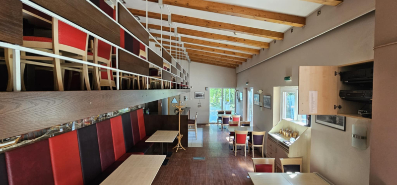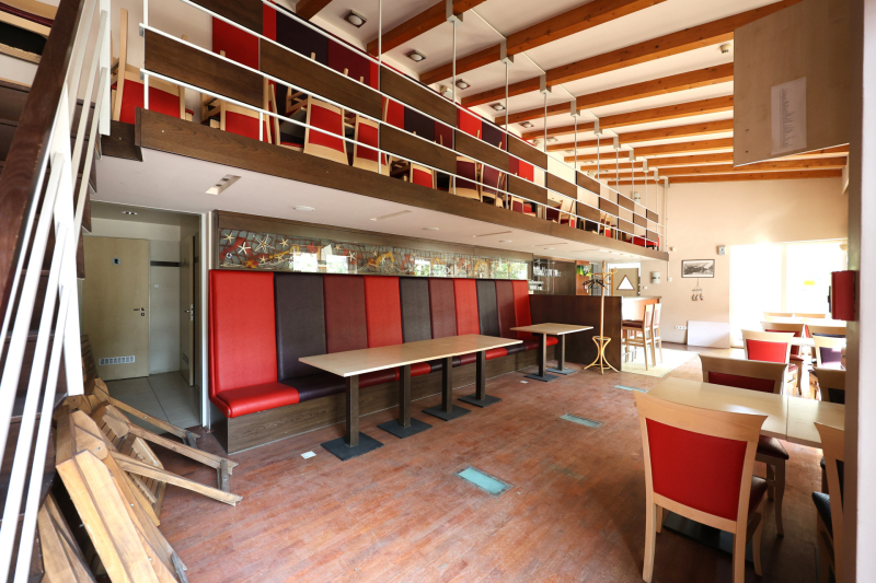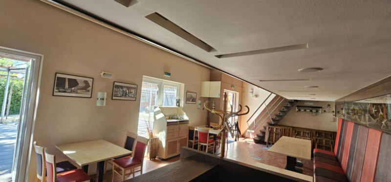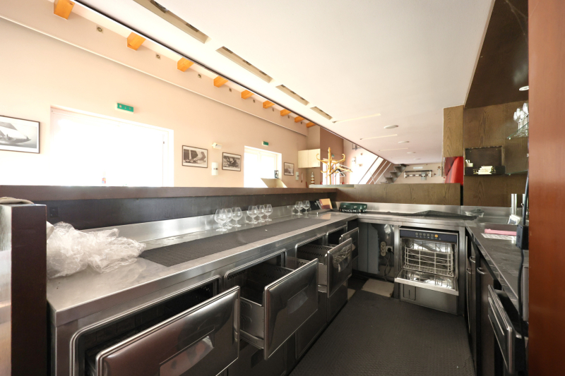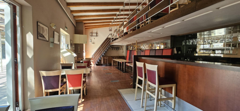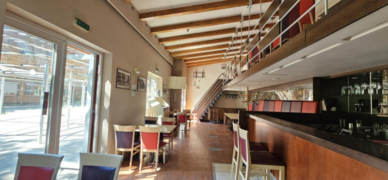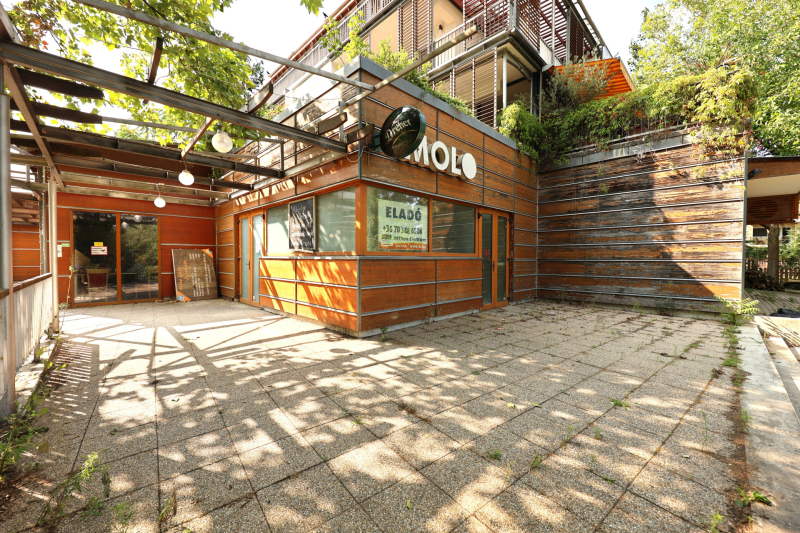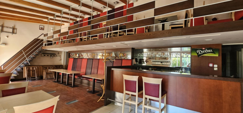 A vendéglátó egység tágas galériás vendégtérrel rendelkezik melyhez összességében 204 nm-es terasz tartozik, melyet akár igény szerint be is lehetne építeni.