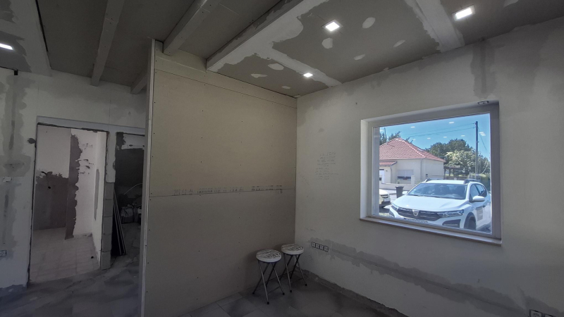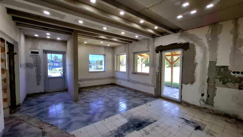 Az épület felújítása során :- körbe szigetelték a teljes épületet. ÚJ nyílászárók, ÚJ trapéz lemez tető, ÚJ villamoshálózat, dugaljak, kapcsolók, konnektorok, a mennyezetre pedig ledvilágítások kerültek. Az egyik helyiségben, mennyezeti ablak is beépítésre került.