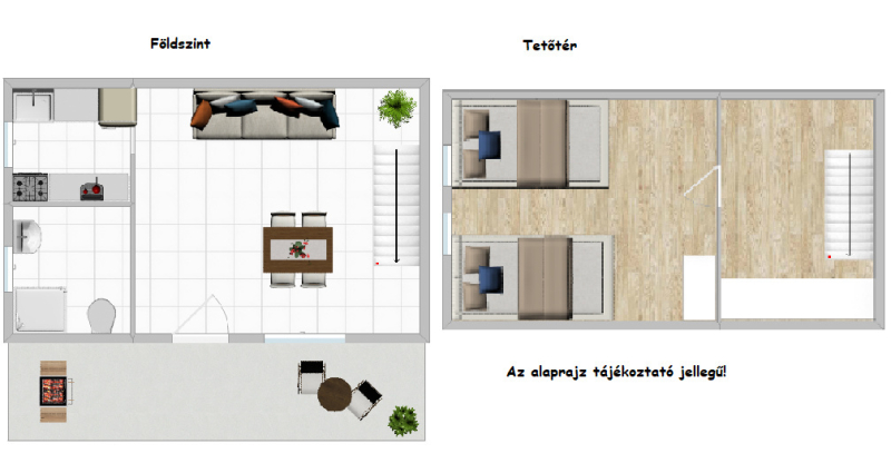 A 10 nm-es terasz kiváló helyszín a reggeli kávéhoz vagy a délutáni pihenéshez, miközben a környék csendje és nyugalma igazán otthonossá teszi a környezetet. A telken egy praktikus tároló is helyet kapott, amely ideális kerti eszközök, kerékpárok vagy szezonális holmik elhelyezésére.