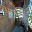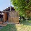 A telken két előre gyártott faház kapott helyet. Az egyik hálószobaként, a másik konyha-étkezőként funkcionál. A ház déli oldalán fedett teraszt alakítottak ki.