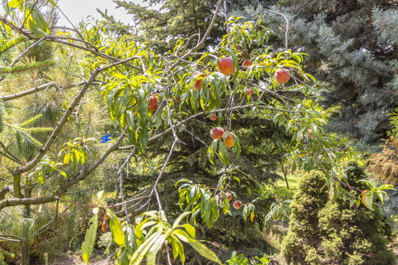 A kertben rengeteg gyümölcs terem, többek között mézédes őszibarack, alma, körte, ribizli és szőlő.