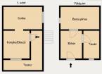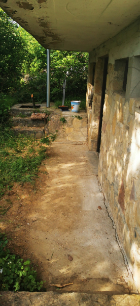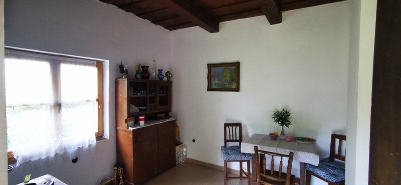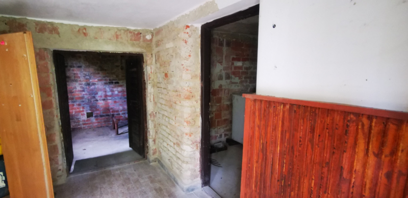 A telken egy bruttó 53m2-es felújított téglából épült ház található, melynek lakószintjén konyha-étkező, 1 szoba és alagsorában 3 beton padlózatú helyiség található. Külön kerti WC.