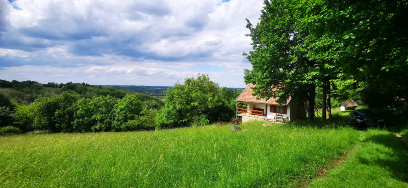 Káváson (Zalaegerszegtől 14 km-re) eladó 7301 m2-es panorámás telek kis nyaralóval.