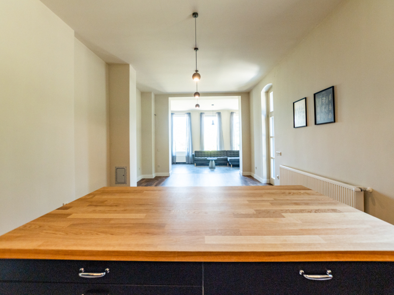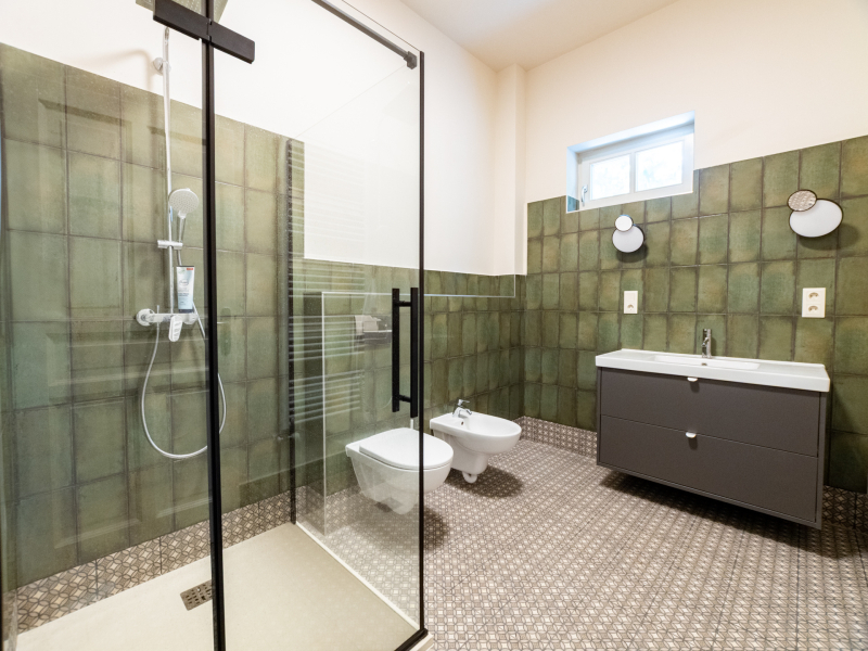 A belső terek kialakításánál a természetes anyagok és a prémium burkolatok dominálnak: a hajópadló lépésálló szigeteléssel készült, megfelelve a mai építési szabványoknak, a nappaliban és az étkezőben pedig stílusos spanyol cementlapok teszik különlegessé az enteriőrt.