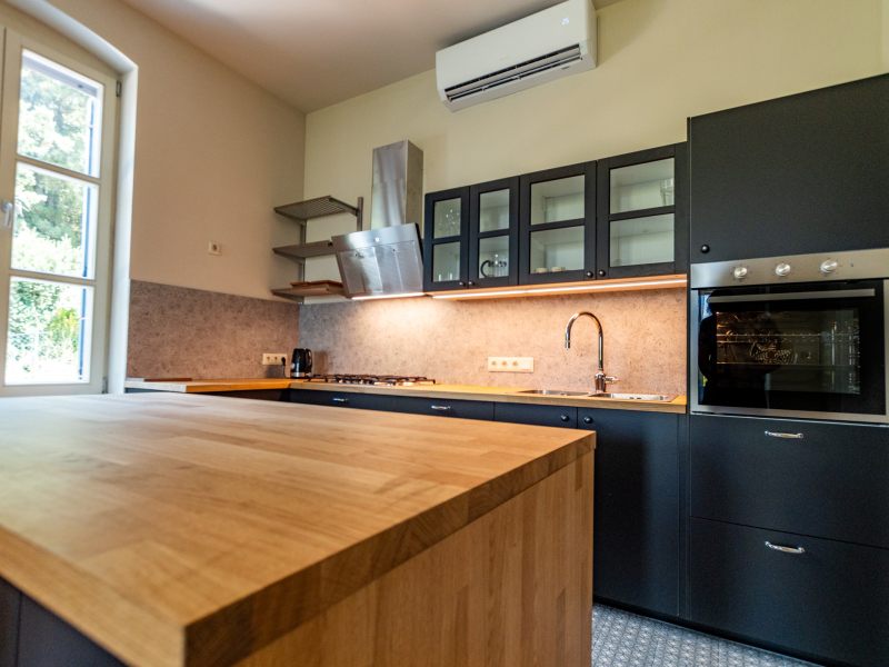 A tökéletes klímakomfortot az emeleten három különálló klímaberendezés biztosítja, míg a földszinten a nappali és a hálószoba is külön hűtő-fűtő klímával felszerelt.