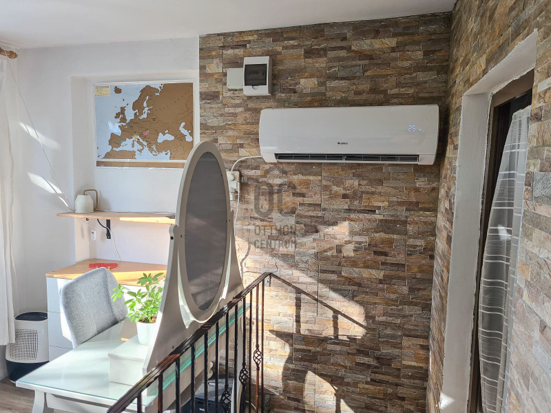 Fűtés: alsó szinten kandalló + hűtő-fűtő klíma, tetőtérben hűtő-fűtő klíma