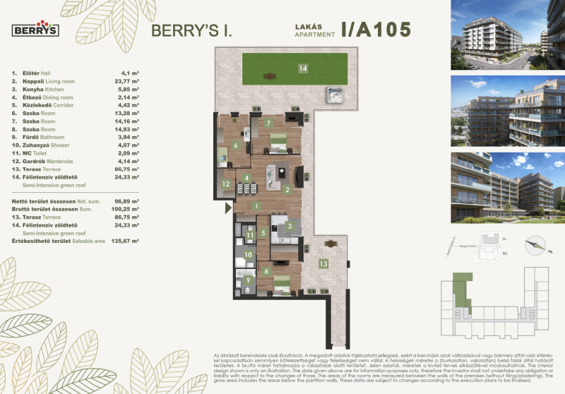 A gyönyörű kilátás nyugalma a városi nyüzsgés harmóniájával. A Berry’s minden lakásához tartozik loggia, erkély, vagy terasz!