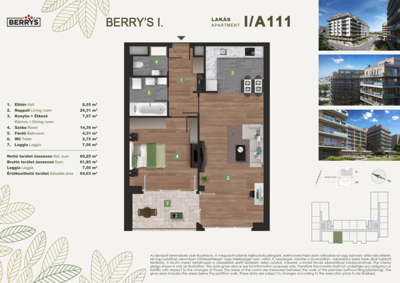 A gyönyörű kilátás nyugalma a városi nyüzsgés harmóniájával. A Berry’s minden lakásához tartozik loggia, erkély, vagy terasz!
