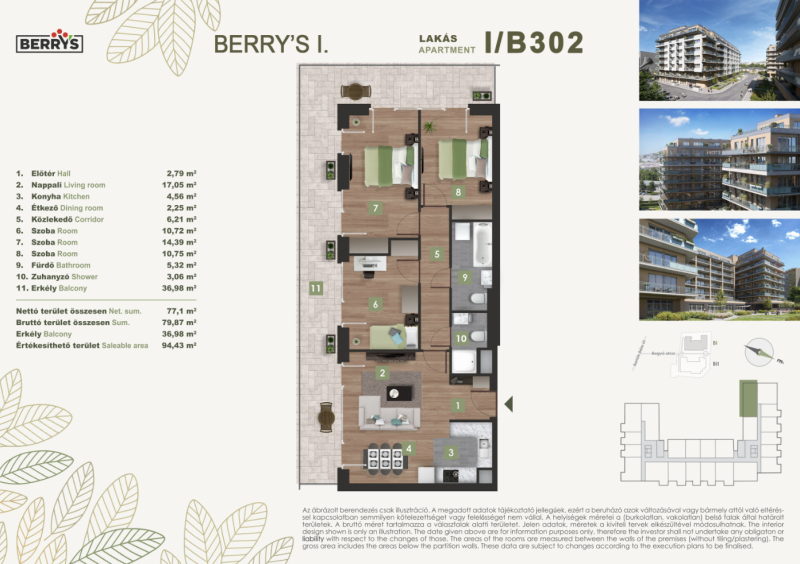 A gyönyörű kilátás nyugalma a városi nyüzsgés harmóniájával. A Berry’s minden lakásához tartozik loggia, erkély, vagy terasz!