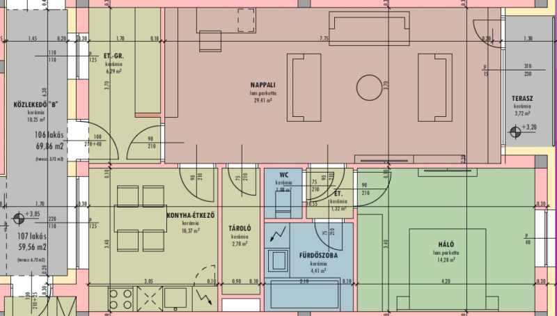 Az új építésű társas ház várhatóan 8 hónapon belül kerül átadásra, mely korszerű hő takarékos építészeti megoldásokat alkalmazva készül el. A falazata monolit vasbeton vázszerkezettel Porotherm 30 X-Therm Rapid dryfix kerámia tégla falazatta épül, mely 12 cm-es EPS Grafit homlokzati hőszigetelést kap.