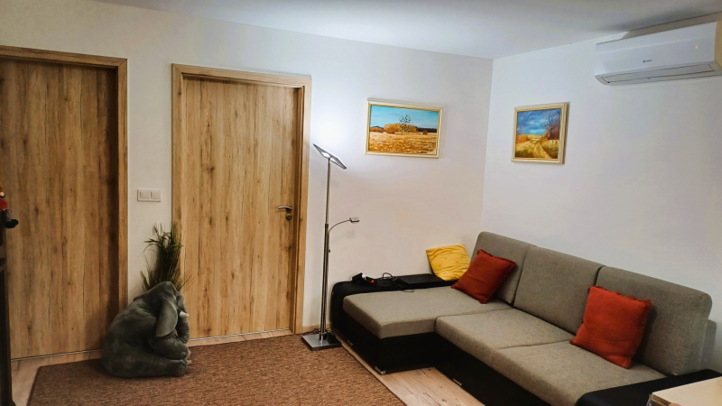 - Használati beosztása: Közel 20 m2-es nappali / étkező, 2 hálószoba, konyha ( új konyhabútorral, mosogatógéppel, elektromos főzőlappal, sütővel ) , fürdőszoba (zuhany és toalet )
