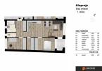 Földszinten egy 33 m2 - es iroda + a gépkocsi parkolók kerülnek kialakításra, 1 - 2 - 3 emeleten szintenként 2 db lakás, + a 4. emeleten egy tetőtéri, nettó 70 m2 - es iroda kerül megépítésre.