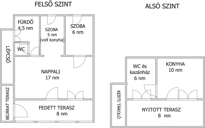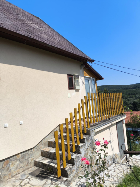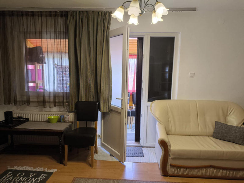 A felső emeleten egy szép nappali, és 2 kis szoba található fürdőszobával, külön wc-vel. A berendezés nagy része is benne van az árban, így azonnal költözhető.