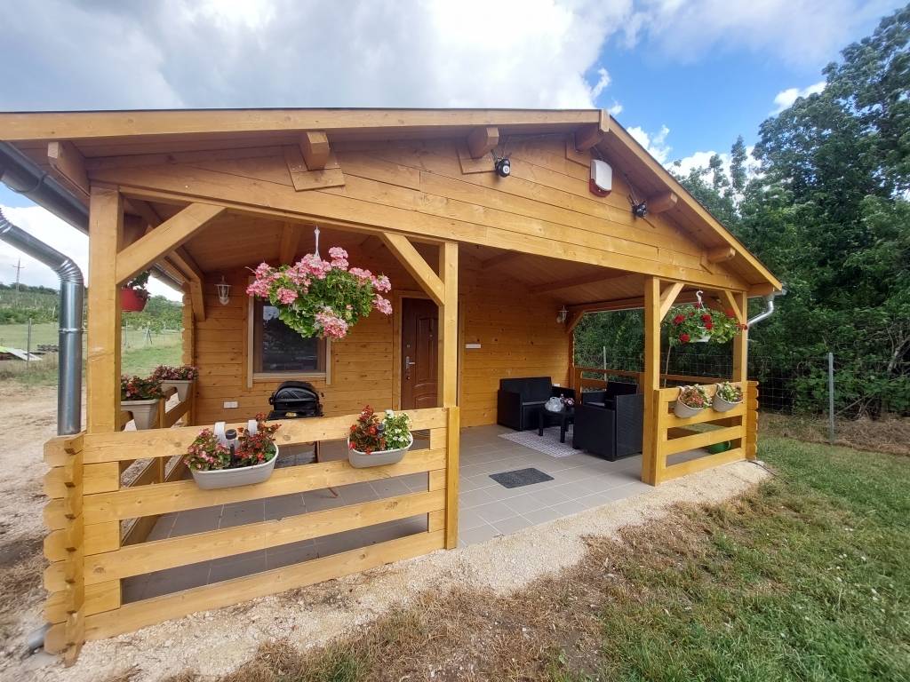 Udvara rendezett, melyen megtalálható egy 7 m2-es beton alapon fekvő melléképület, mobil kemence, sütögető, hangulatos növényzet.