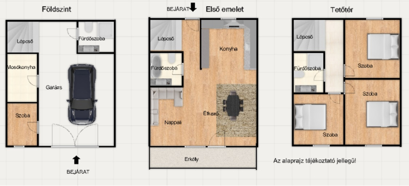 -földszinten garázs, fürdőszoba, szoba és mosókonyha