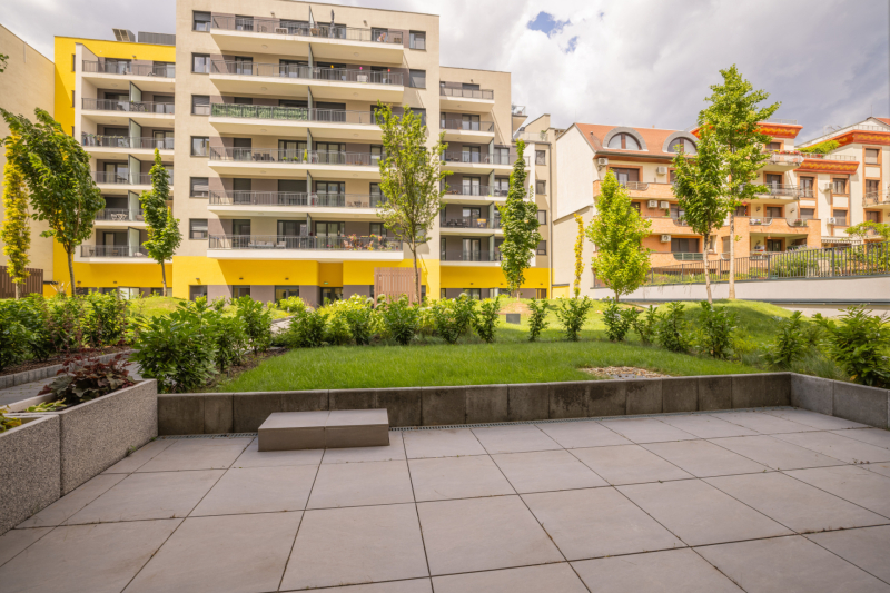 A környék egyik legnívósabb, prémium minőségben épült társasháza, ahol a kivitelezés és a részletek igényessége valódi értéket képvisel. Stílus, kényelem és megbízhatóság egy helyen. Ez a különleges lakás egy 2023 év végén elkészült, modern társasházban található. A rendezett, tágas közös terek, a nyugodt és biztonságos környék, valamint a barátságos lakóközösség valódi otthonos hangulatot teremtenek. A földszinti elhelyezkedésnek köszönhetően 40 m²- ES SAJÁT KERT ÉS NAPFÉNYES TERASZ tartozik a lakáshoz – ez a párosítás igazi ritkaság a fővárosban! A nagy méretű erkélyt mind a nappaliból mind a hálószobából meg tudjuk közelíteni és máris élvezhetjük a tágas saját kertünket is.