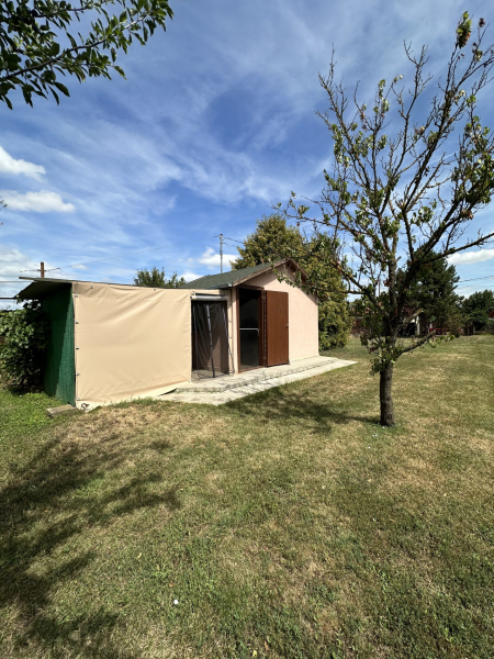 A telken termő gyümölcsfák, kisebb melléképületek, valamint egy szigetelt faház fedett terasszal található, ami 12 nm. Az utca felőli rész gondozott, füvesített, a hátsó terület jelenleg parlagon, de biogazdálkodásra kiválóan alkalmas. Buszmegálló a telektől 10 perc sétára található.