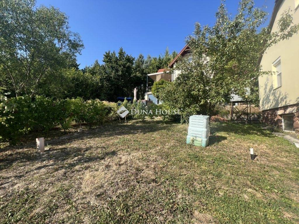 A kert ideális méretű, gondozott szőlővel és termő gyümölcsfákkal, a fúrt kút révén pedig a locsolás is egyszerűen megoldható.