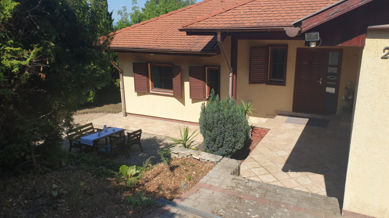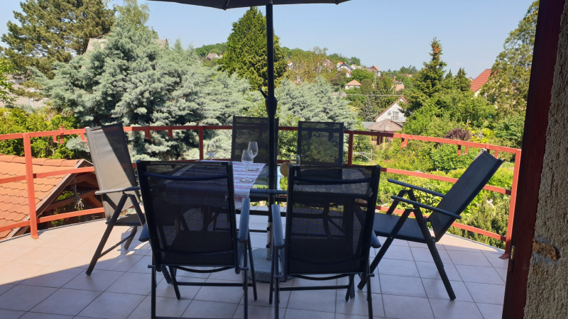 nappaliból nagy terasz részleges balatoni kilátással (Badacsony irányába)