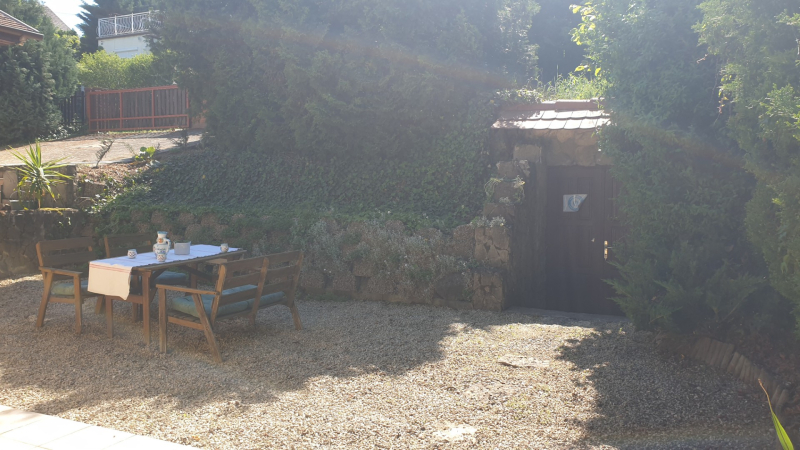 gondozott kert, szalonnasütő, bográcsozó, fedett kiülő