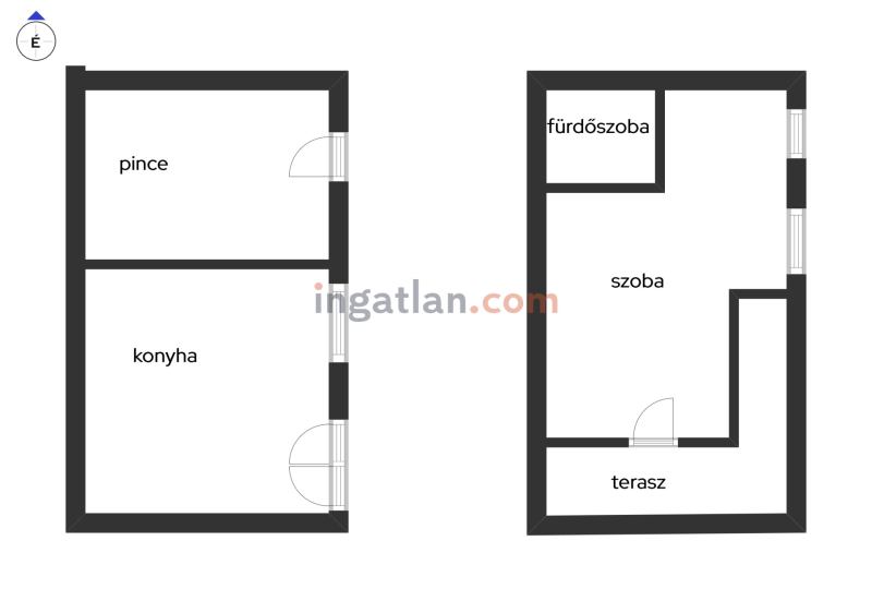 - földszinten: présház, konyha
