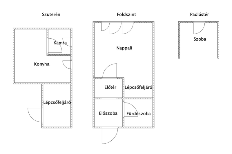 - belső kialakítás: szuterénben: konyha+ étkező, kamra, földszinten:előszoba, fürdőszoba és nappali, padlástérben egy hálószoba található