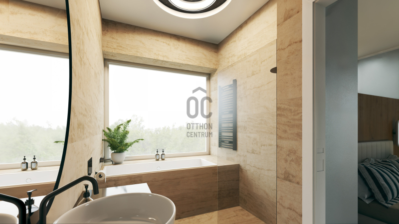 A jól átgondolt koncepcióhoz modern kivitelezés társul – az épület kertre néző, nem az az utcafrontra, így biztosítva a kilátást minden lakásból a ligetes környékre, ahol már érezhető a Balaton közelsége.