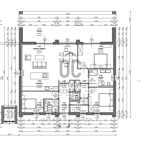 Tágas elrendezés: Nappali, 3 hálószoba, 2 fürdőszoba, gardrób, mosókonyha