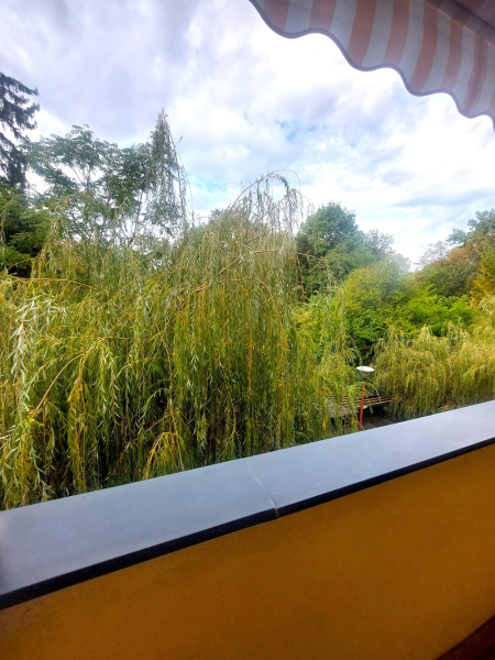 - hangulatos délnyugati terasz, a fűzfák árnyékában