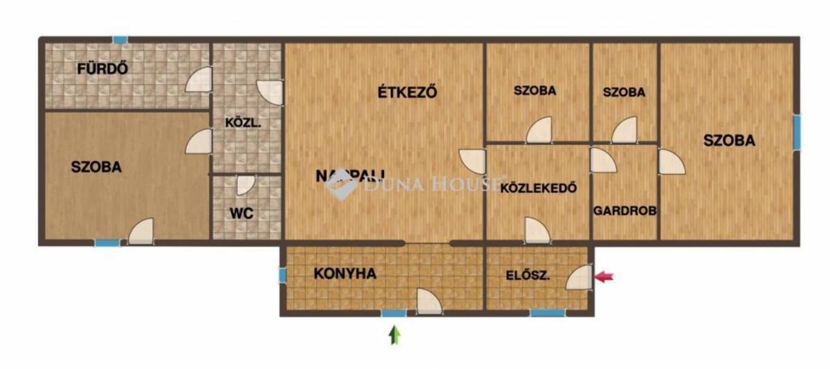 4 szoba, nappali-étkező, konyha, fürdő, tároló, közlekedő és wc alkotja a hasznos lakrészt.