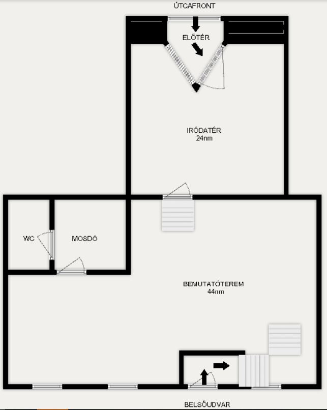 Az ingatlan két nagyobb helyiségből áll, bejárata az utcára nyílik.