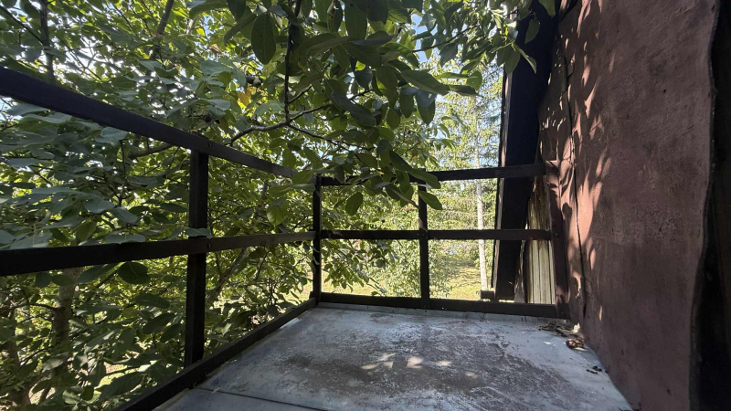 A házikó alsó része 25 m2 nagyságú és kettő helyiség található,az emeleti tetőtér pedig egy külső lépcsőn közelíthető meg jelenleg,ami beépíthető.