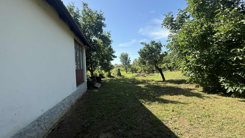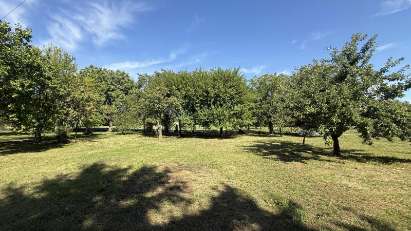 16 Reihen gemischter Weintrauben, aus denen ca. 1600 Liter Wein hergestellt werden können, sowie Walnuss-, Pfirsich-, Birnen-, Apfel-, Pflaumen- und Kirschbäume sind vorhanden, ein Teil des Grundstücks ist umzäunt.