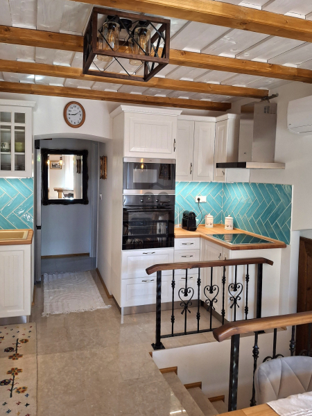 - a földszinten a központi konyha- étkezőből nyílik a dolgozószoba és a vendégfogadásra tökéletes boltíves pince