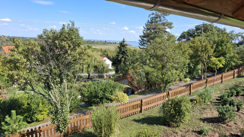 - a teraszról a Balaton és a kert panorámája tárul elénk, ide még egy pizzakemence lett tervezve