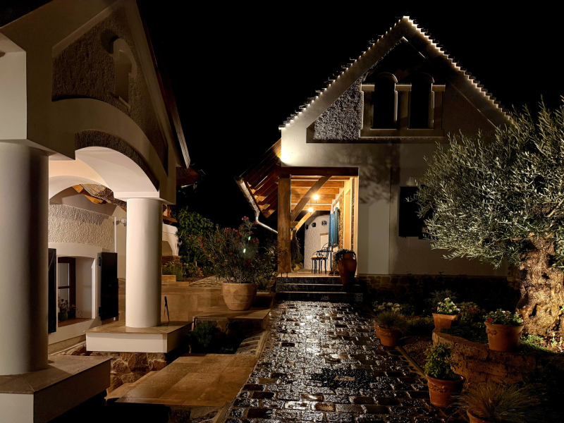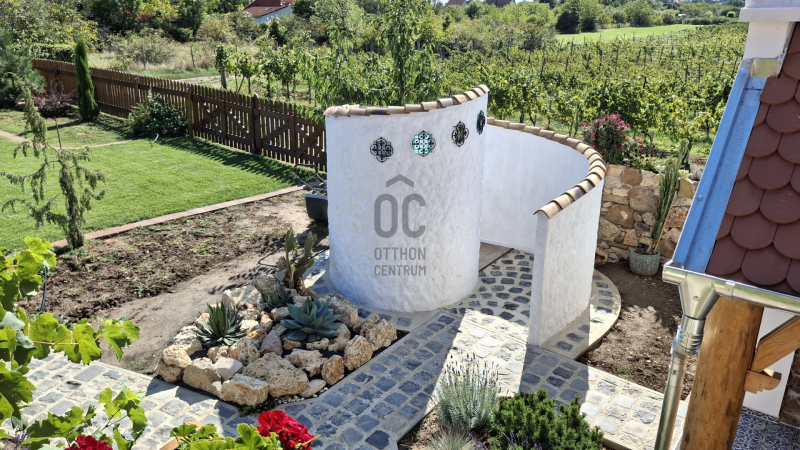 Szakértelmének és szenvedélyének köszönhetően a mai kor igényeit figyelembe véve a ház teljesen megújult, a gondosan megtervezett kert pedig a mediterrán tájak hangulatát csempészi be a szőlőültetvényekkel övezett ingatlanba.