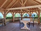 - az aparman bejáratával szemben, a pince fölé épült TERASZ faszerkezete kb. 45 m3 fa felhasználásával épült