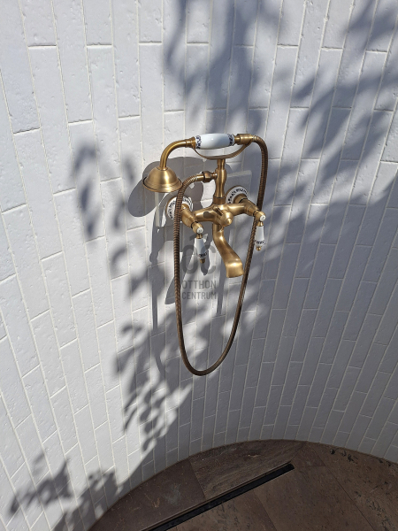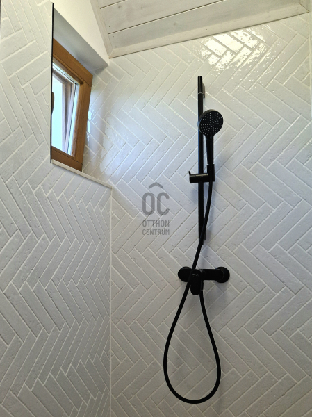 - olasz csempével burkolt, fűtőszálas vízmelegítővel kiegészült bájos kerti zuhanyzó