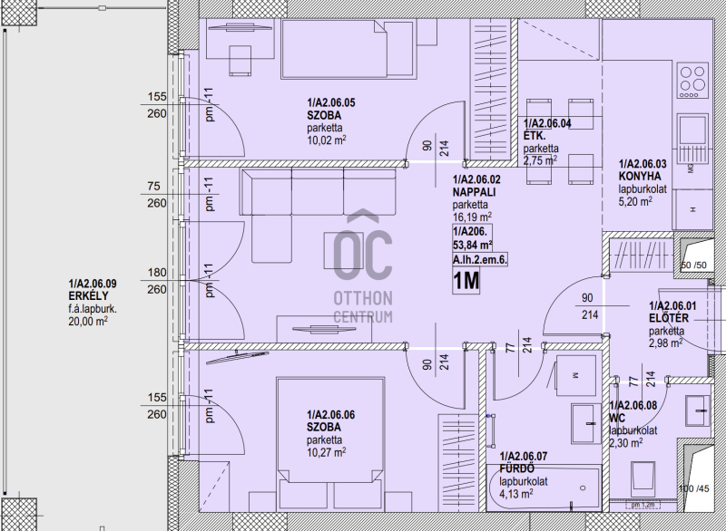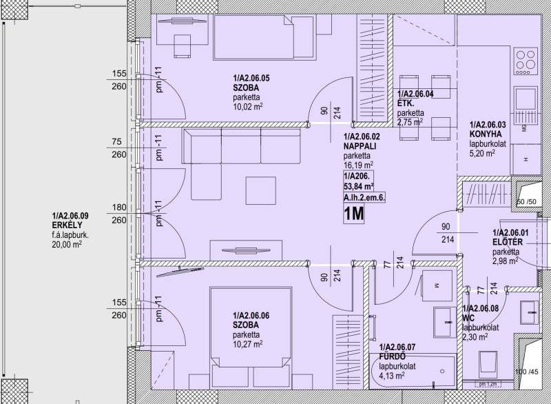 Erkély mérete: 20 m2