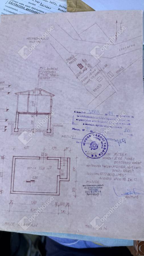 Az ingatlanhoz minden szükséges dokumentáció rendelkezésre áll: alaprajz, építési engedély, fúrt kút engedély és további hivatalos iratok.